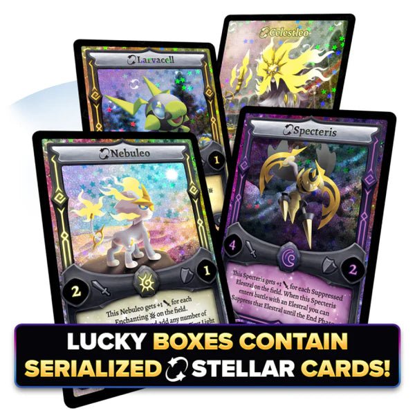 30 lucky boxes feature a Serialized Stellar Box Topper (x/10)