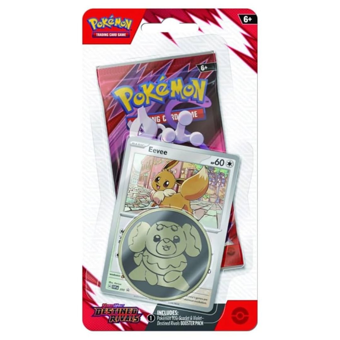 Each Destined Rivals Single Pack Blister includes everything you need to begin your journey: a collectible promo card, a Pokémon coin, and a Scarlet & Violet – Destined Rivals booster pack to expand your collection.