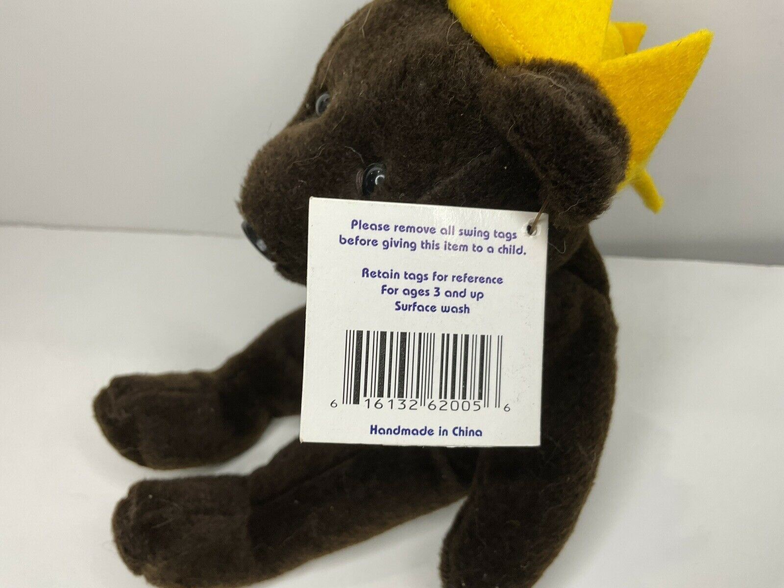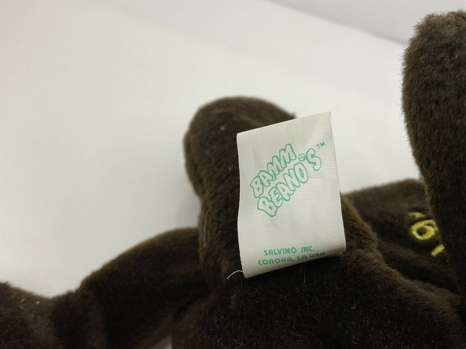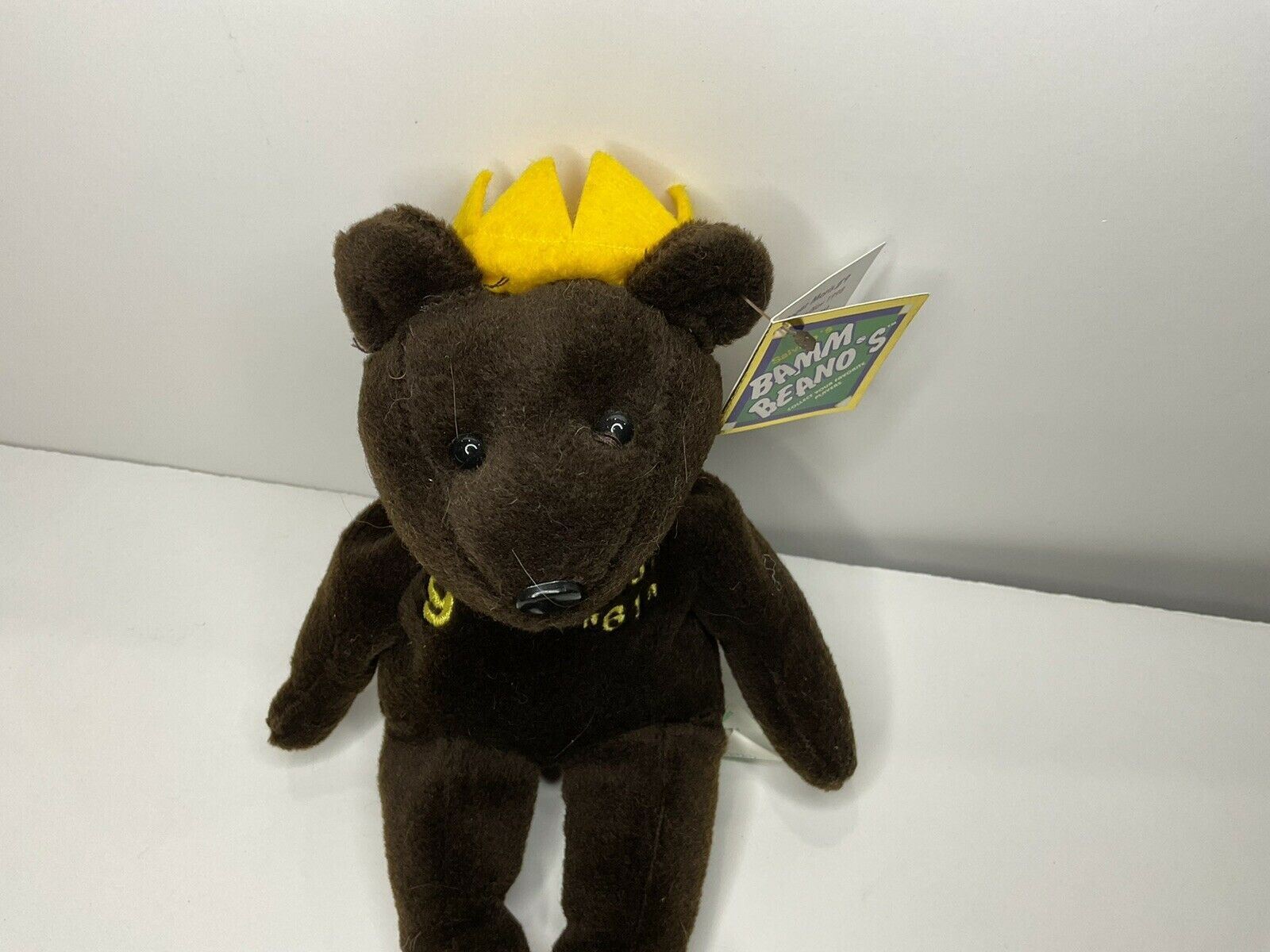 This 1998 vintage stuffed animal toy from Salvino's Bamm Beano's features Roger Maris of NY Yankees. This "1961 61 Home Run King" teddy bear is dark brown in color, with a golden yellow crown on its head. It is approximately 8 inches tall.