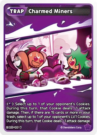 Select up to 1 of your opponent's Cookies. During this turn, that Cookie deals -1 attack damage. Then, if there are 15 cards or more in your trash, select up to 1 of your opponent's LV.1 Cookies. During this turn, that Cookie deals -1 attack damage.