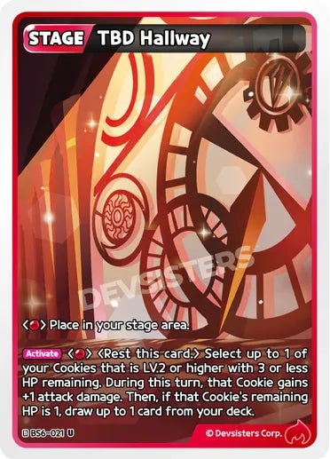 Place in your stage area. 【Activate】 Select up to 1 of your Cookies that is LV.2 or higher with 3 or less HP remaining. During this turn, that Cookie gains +1 attack damage. Then, if that Cookie's remaining HP is 1, draw up to 1 card from your deck.